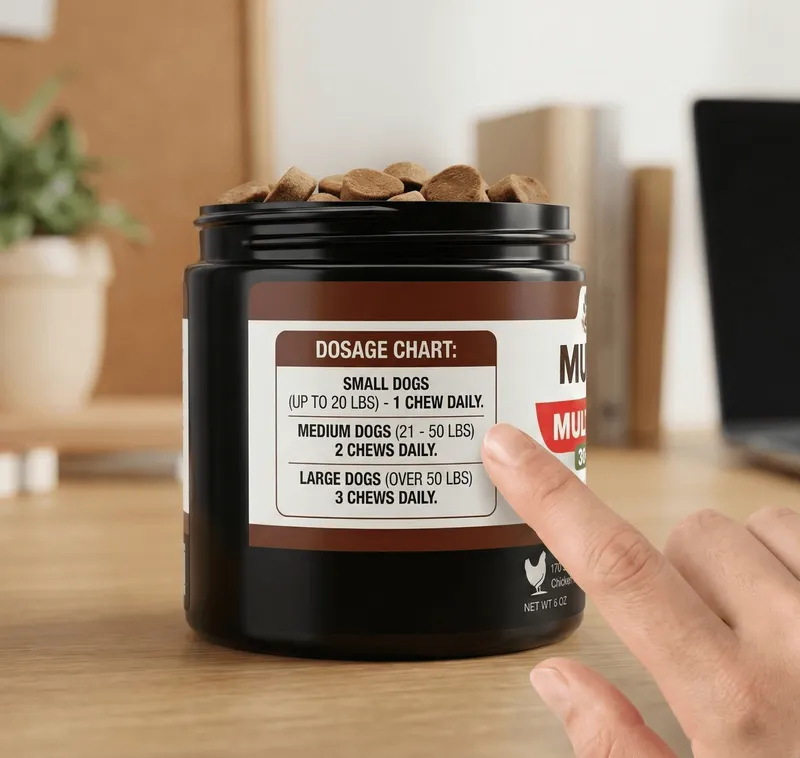 Determine the perfect daily serving based on your dog's weight. Small dogs (up to 25lbs) need just 1 chew, while larger breeds benefit from up to 4 to support their size.